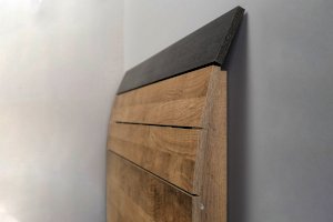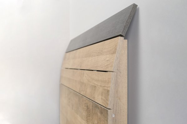 Планкованное изголовье с изгибом — два варианта конфигурации: с полкой и без неё.