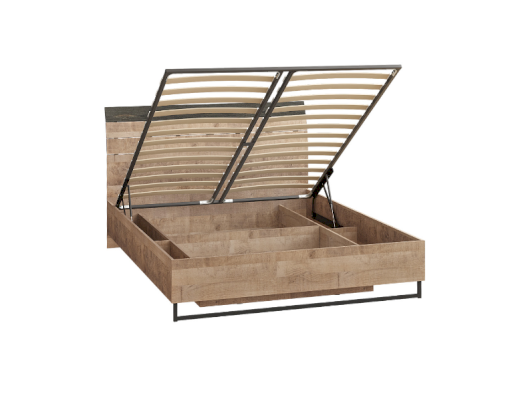 Кровать может быть оснащена ортопедическим основанием с подъёмным механизмом, который открывает доступ к вместительному коробу для хранения.