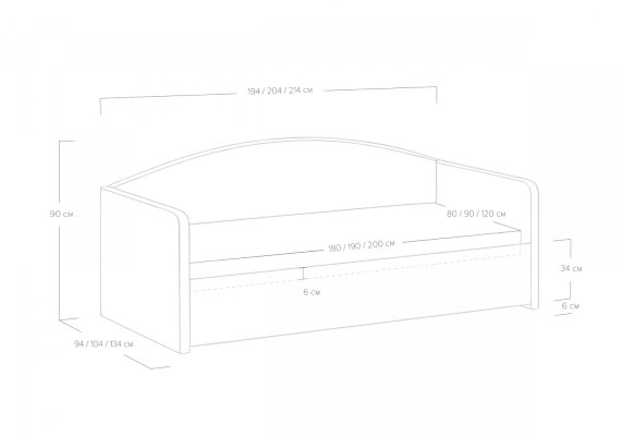 Размер спального места 80*180 / 80*190 / 80*200 / 90*200 / 120*200 / 90*190 / 120*190