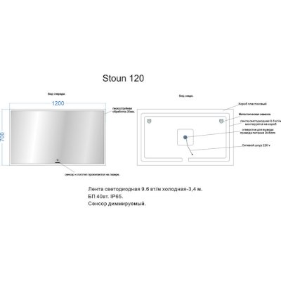 Светодиодное зеркало с сенсорным выключателем.