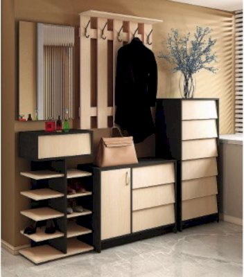 Интро - это целая серия мебели, с помощью которой вы можете обустроить прихожую. В серии представлены обувницы разных размеров с откидными створками, шкаф, зеркало, вешалки.