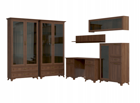 Слева расположены три глубокие ниши со стеклянными полочками, отлично подходящие для хранения книг и декора, а стеклянная дверца оберегает вещи находящиеся внутри от попадания пыли и влаги.