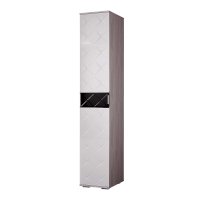 В глубокий пенал Кимберли ПН-16 вы сможете повесить свою одежду, на верхней и нижней полке разместить аксессуары и любые принадлежности. Изделие имеет белый глянцевый фасад со вставкой из черного стекла (лакобель) и гравировкой в виде ромбов. Модель прекрасно подойдет для небольшой комнаты, так как размеры очень компактные.