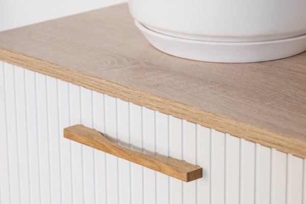 Данная модель оснащена боковыми выдвижными ящиками на шариковых направляющих полного выдвижения. Ящики укомплектованы ручками из натурального дуба.