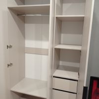 хороший шкаф, нареканий нет, немного неуобно было собирать одному человеку из за скрытого крепления полок