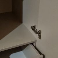 положили 1 амортизатор силиконовый, чтоб дверца не хлопала, а дверцы три. Еще трещина на одной из полок.