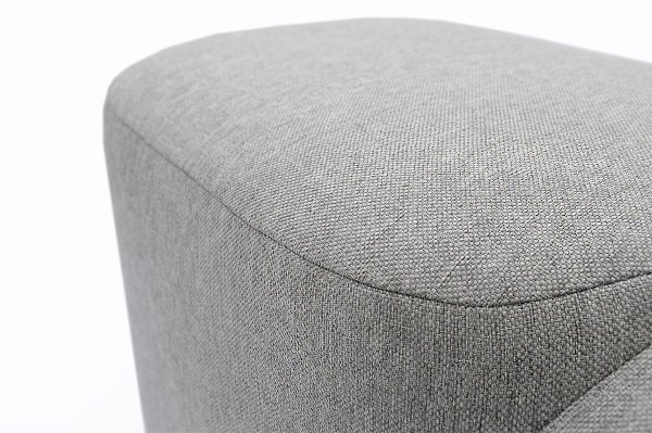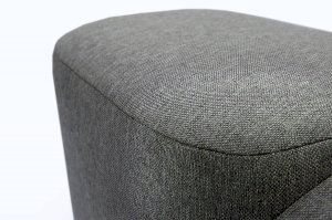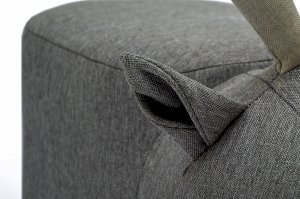 Пуф обшит прочной и экологичной рогожкой серого цвета. Материал натуральный, приятный на ощупь, устойчив к загрязнениям.