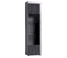 Посудный шкаф со стеклянной дверцей позволит выставить в гостиной те коллекционные и памятные вещицы, которыми вы дорожите. Стеклополки в обработке еврокромкой выдерживают до 10 кг каждая. Их можно декоративно подсветить с помощью светодиодной подсветки (в комплекте не поставляется, приобретается отдельно). Фасад перенавешивается на левую и правую сторону. Серебристая стильная ручка из массива дерева и серое тонирование стекло фасада вносят смелые дизайнерские штрихи в восприятии актуального декора "под бетон".