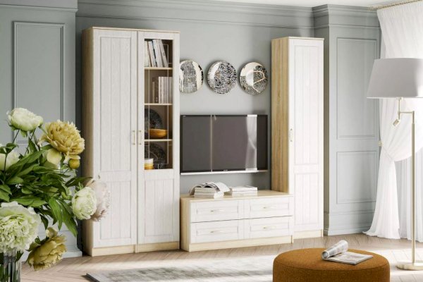 Шкаф Оливия НМ 040.43 Х не займет много места в гостиной. Подойдет для тех, кто хочет хранить в шкафу одежду. Внутри модуля на пяти полках можно разместить большое количество вещей.
