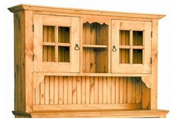 Буфет из массива сосны ENSEMBLE 150. Широкий буфет оценят и любители оригинальных интерьеров, и практичные хозяева. Комплект из нижней тумбы и верхнего буфета выполнен в стиле Прованс. За стеклянными дверцами можно хранить праздничные сервизы, семейные раритеты, интерьерные вещицы.  Задние стенки всех буфетов набраны из дощечек массива сосны. Также из массива сосны набраны днища ящиков. В конструкции нет элементов из фанеры, ДСП, или МДФ.