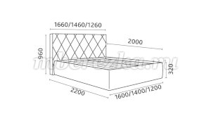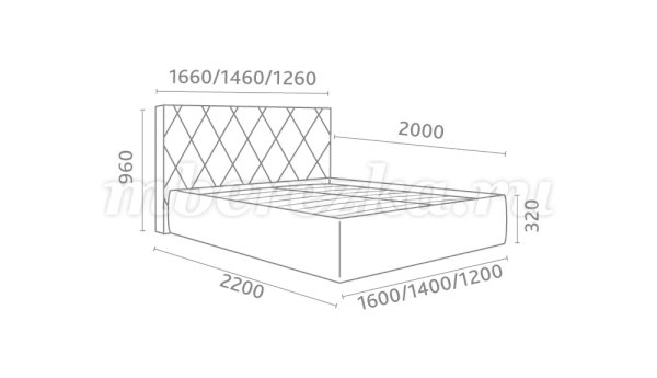 Кровать доступна в 3-х размерах:  1200, 1400, 1600 мм.