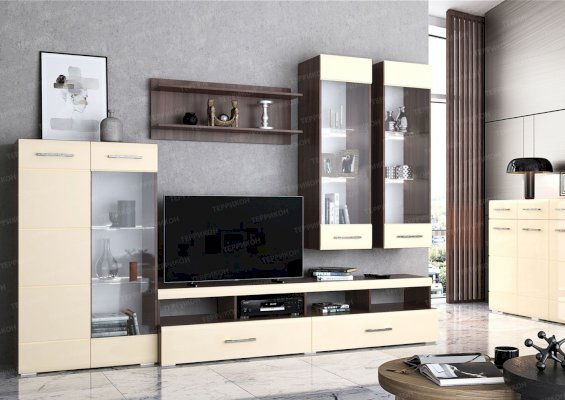 гостиная Фиеста комплектация №2 ясень шимо темный/крем-брюле глянец