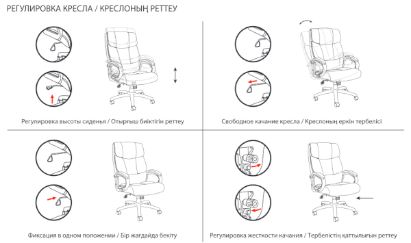 Тип механизма кресла: "топ-ган" качание с регулировкой под вес и фиксацией в 1 положении