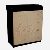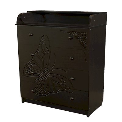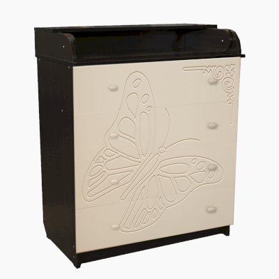Вам понравится привлекательный внешний вид детского комода. На его лицевой части вы увидите углубленный декор в виде порхающей бабочки.