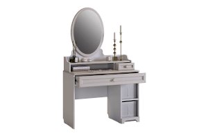 Трюмо из серии «Белла» – настоящая находка для истинных леди. Трюмо сочетает в себе утонченный дизайн, функциональность и удобство. Столешницу из МДФ украшает фрезеровка. Декоративная кисть на ручке окончательно подчеркнет изящество изделия.