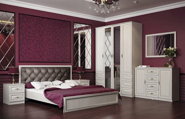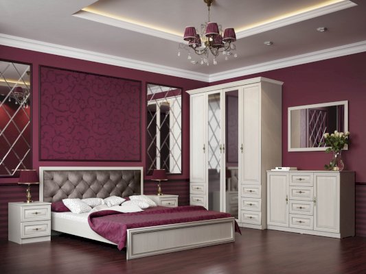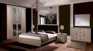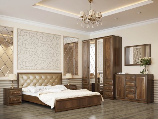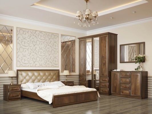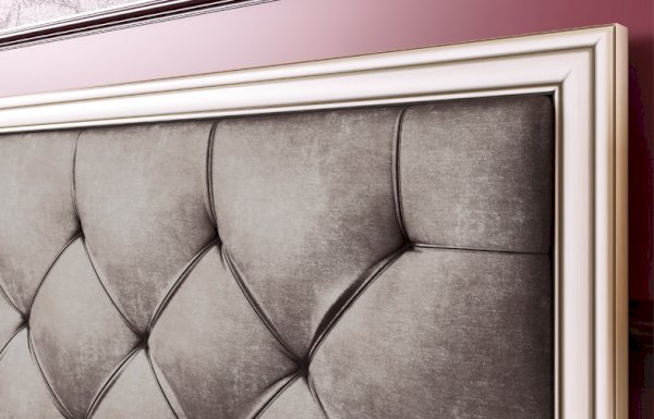 Кровать из серии Габриэлла. Изголовье кровати обшито велюром.