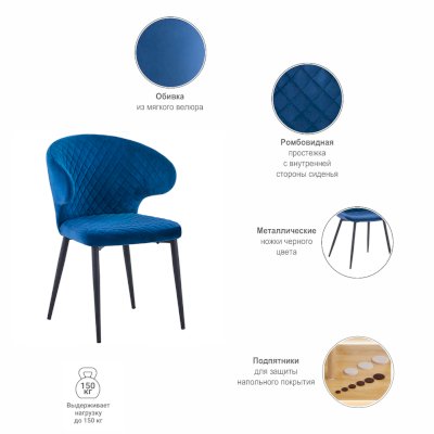 Ножки стула имеют прочную конструкцию, выполнены из металла и окрашенного в чёрный цвет.  Насыщенные цвета обивки станут акцентом в любом интерьере.