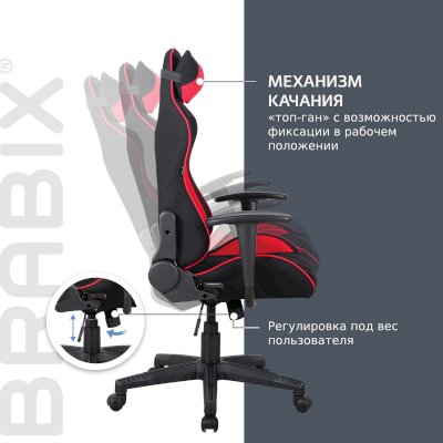 BRABIX "GT Racer GM-100" создано с учётом строгих требований к эргономике и функциональности. Его дизайн повторяет форму кресел лучших спортивных болидов планеты. Длительные игровые сессии и офисные будни ещё никогда не были настолько комфортными!
