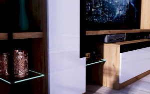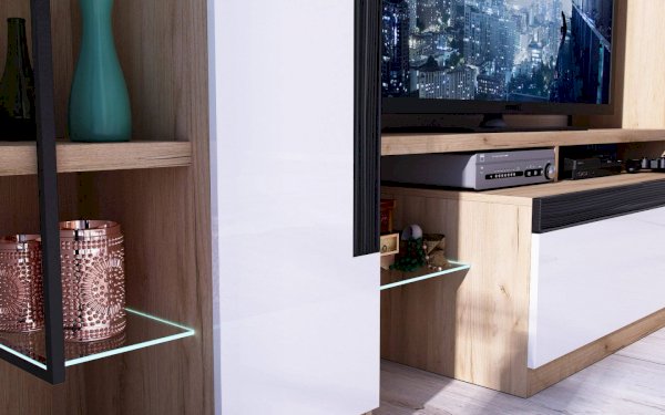 Материал корпуса: ЛДСП 16 мм, Стекло прозрачное закаленное 4 мм, Металлические декоративные элементы