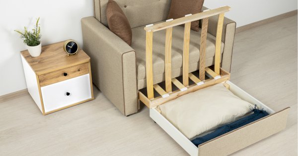 Механизм трансформации: выкатной с гнутоклееными латами