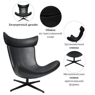 Высокая изогнутая спинка и приподнятое вверх сиденье словно приглашают вас присесть и самостоятельно оценить непревзойденный комфорт кресла Toro.