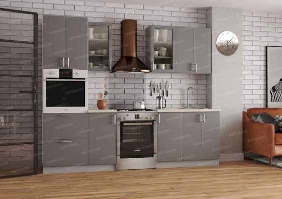 Модульный кухонный гарнитур Хайтек софт графит (Террикон) - за 64 022 руб. в Апрелевке. Купите на сайте aprelevka.onlinemarketmebeli.ru или по телефону 8(800)505-30-63 уже сегодня! Уточнить наличие, комплектацию, актуальную цену можно бесплатно у менеджера ежедневно. Закажите Модульный кухонный гарнитур Хайтек софт графит (Террикон) до конца акции! Доступна покупка в кредит, рассрочку. Доставим со склада или на заказ.