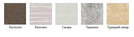 Цвет столешницы (категория Эконом): Кастилло, Резонанс, Сахара, Терезино