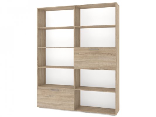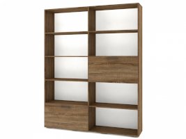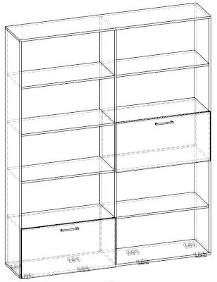 Применение задней стенки из ЛДСП (в ячейках с фасадами) позволяет использовать данный стеллаж для зонирования пространства (чтобы предотвратить опрокидывание, необходимо обеспечить крепление стеллажа к стене).
