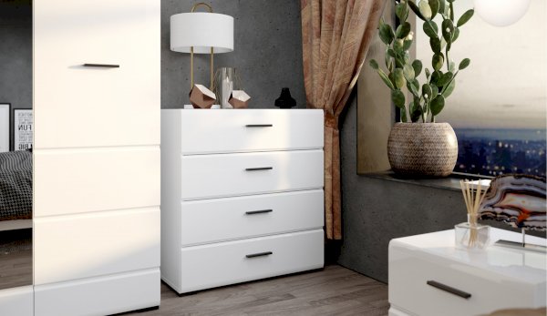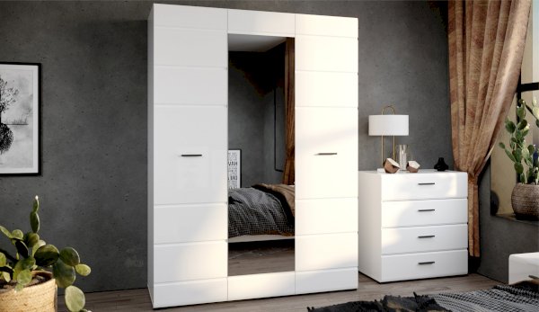Компактный шкаф Йорк – это решение для небольшой спальни, гостиной или прихожей. Он выполнен в современном стиле – сочетает в себе функциональность и эффектный внешний вид: горизонтальная фрезеровка фасадов, контрастные черного цвета ручки и задняя стенка. Глянцевые белые фасады High Gloss из МДФ и зеркало в полный рост наполняют комнату светом, делают ее просторнее и ярче. Внутри предусмотрены секции для белья и большое отделение со штангой. Идеально компонуется со всеми модулями системы Йорк.