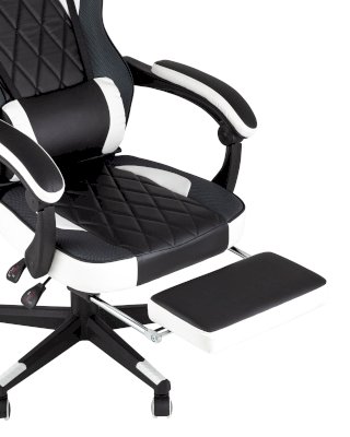 Кресло укомплектовано ортопедическими подушками для поддержки шеи и пояса, каждая из которых может быть настроена так, как вам захочется. Механизм регулировки угла наклона спинки от 90 до 180 градусов и выдвижная подставка для ног под сиденьем позволяют достичь максимального комфорта.