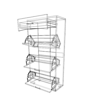 Тумба оснащенная тремя отделениями для обуви и одним выдвижным ящиком полного выдвижения. Она прекрасно подходит для современной обстановки.