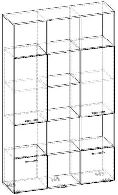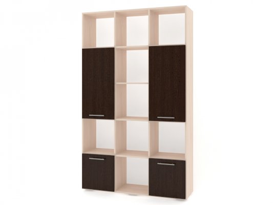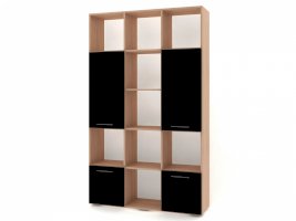 Применение задней стенки из ЛДСП (в ячейках с фасадами) позволяет использовать данный стеллаж для зонирования пространства (чтобы предотвратить опрокидывание, необходимо обеспечить крепление стеллажа к стене).
