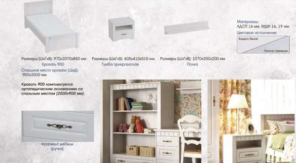 Модульная спальня детская Прованс (МБГ) - за 37 581 руб. в Апрелевке. Купите на сайте aprelevka.onlinemarketmebeli.ru или по телефону 8(800)505-30-63 уже сегодня! Уточнить наличие, комплектацию, актуальную цену можно бесплатно у менеджера ежедневно. Закажите Модульная спальня детская Прованс (МБГ) до конца акции! Доступна покупка в кредит, рассрочку. Доставим со склада или на заказ.
