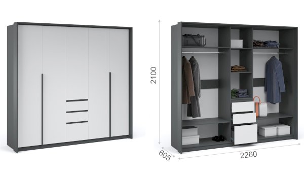 Наполнение: штанги + полки + выдвижные ящики